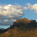 PUSCH RIDGE DRESSES UP THE ENTIRE NORTHWEST SIDE OF TUCSON AND MAKES IT THE FASHIONABLE SIDE OF TOWN. I’m closing out my 4th decade in TUCSON and most of that time I have lived in one spot in the shadow of PUSCH RIDGE. Early on, I set up a ladder and never moved it, eventually the vines grew over the ladder and now it can never move but nightly I will find myself on my roof watching the interplay of lite and color as both bounce off PUSCH RIDGE. It can be particularly rewarding this time of the year when clouds appear and give the sky contrast and color at sunset, the storms and lightening add a completely different component, each photographer has to decide how much of that he can handle. I frankly get off the roof when the sky is crackling, the tree in my front yard was recently reduced to a hedge by an explosive lightening strike. So take my advise, keep your head down and find a good, solid plastic tripod. Today I am posting a new slide show on SouthWestPhotoBank.Com which will show a portion of my collection of my PUSCH RIDGE Collection and hope you find them fun in the real-time of a slideshow and remember in actuality each reflects a day, or 24 hours, in changing weather and time spent. I have driven all over the AMERICAN SOUTHWEST and BAJA and few places I have visited have had the class and beauty that PUSCH RIDGE lends TUCSON. Its always fun when driving in, after a long trip, to finally spy my view of the ridge and finally know, I’M HOME ! There is PUSCH RIDGE to prove it. HOPE YOU ENJOY…
