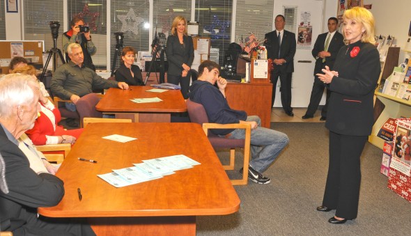 Settling in to sign books Jan Brewer spoke earlier of the emotional anguish she suffered at the hands of the federal government. The Mental and Emotional anguish experienced by Arizona Governor Jan Brewer last year at the hands of the Federal Government who spurned her lawsuits to close the Arizona-Mexican Border to smuggling and illegal immigration. not to mention SB10-70, held up in court but channeled by a half dozen red states who too are being drowned by fed red tape, was the pain needed to get her to write her new book, “Scorpions for Breakfast”. Brewer who spoke December 13 in Tucson at Republican Headquarters, Fifth Street and Craycroft Rd, to a dozen interested fans. A half dozen members of Tucson TV media showed and but were not given the “Water-boarded” quote because Governor Brewer barred media from her opening comments where she spoke to staff and book buyers. The Governor was in a good mood, last week the Supreme Court had agreed to listen to Arizona’s lawsuit on the US-Mexico Border and SB-70 and Jan felt certain her vision would be upheld, attendees lauded her for her stand on ACCESS and eliminating “entitlements” which are stealing Arizona’s future says the Governor.