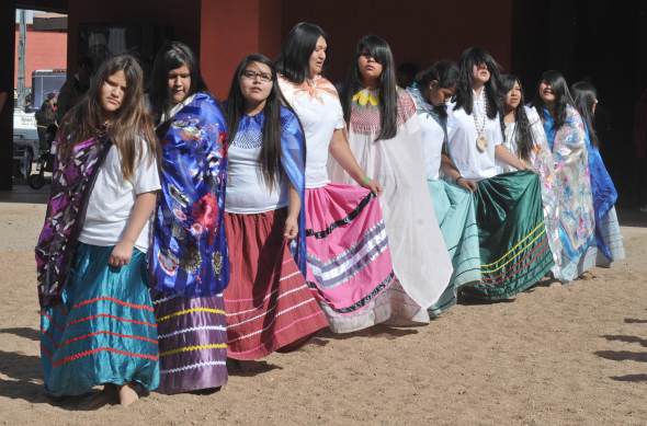 The San Carlos Apache Crown Dancers paint during the daylight and the White Mountain Apache Crown Dancers only paint the girl at night.