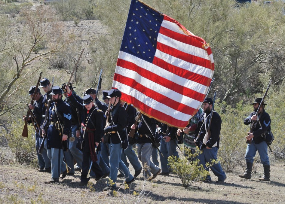 CONFEDERATES SCARE OFF YANKEES PICACHO PEAK PARK SALUTES 150th ANNIVERSARY OF ARIZONA VICTORY » ARMY DRILLING, SIR