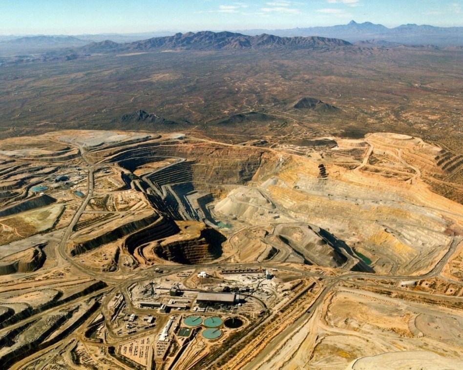 Aerial view of one of three southern Arizona Open Pit Copper Mines, this is the ASARCO Mission Mine