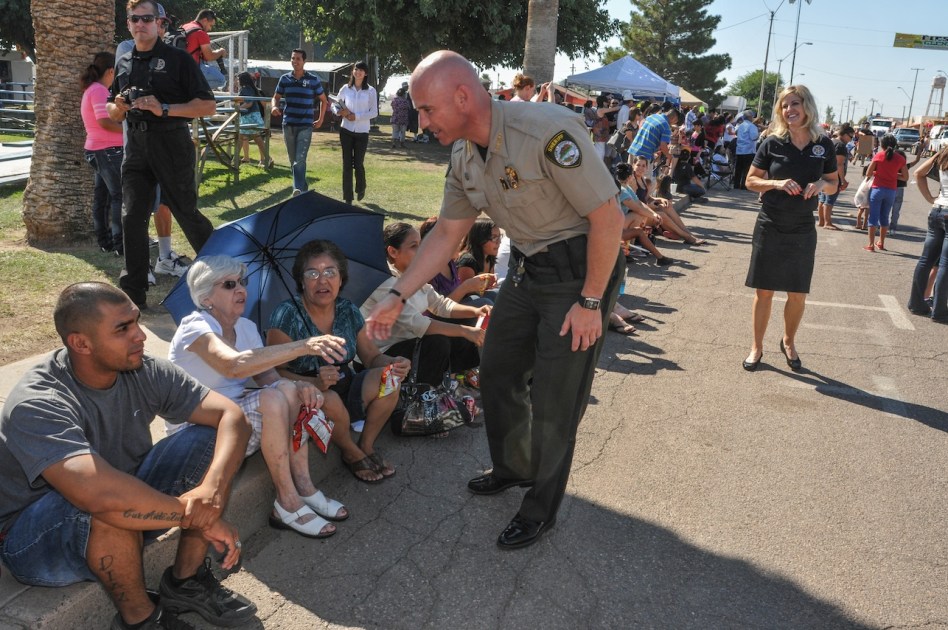 Politicans turned out to shake hands on Labor Day in Eloy, Az after the parade through downtown. The controversial Sheriff of Pinal County shook hands with his constituents asking each for their vote. Babeu has recently drawn attention and criticism for his use of military equipment for a slush fund and was just told to return the equipment …