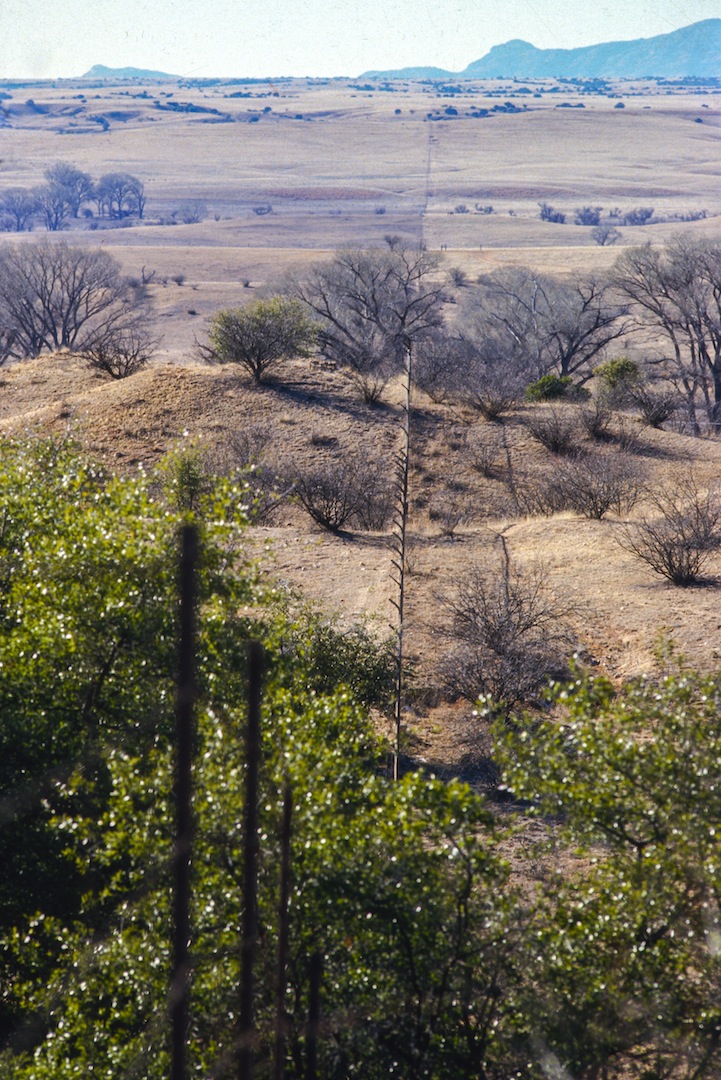MEXICO-US BORDER FENCE runs east from Lochiel and served as a geological border but this fence was often cut and penetrated at will.