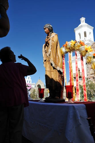 Published October 21, 2012 at 332 × 500 in KATERI TEKAKWITHA BATHS HER LOVE LIGHT ON THE WHITE DOVE OF THE DESERT ! SAN XAVIER MISSION