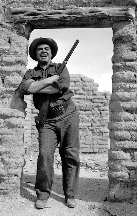 Ernest Borgnine yucks it up during the 1958 filming of “The Badlanders” at Old Tucson. The movie dealt with two men being released from the Arizona Territorial Prison at Yuma in 1898. Both want gold and revenge from a small mining town who imprisoned them unjustly.