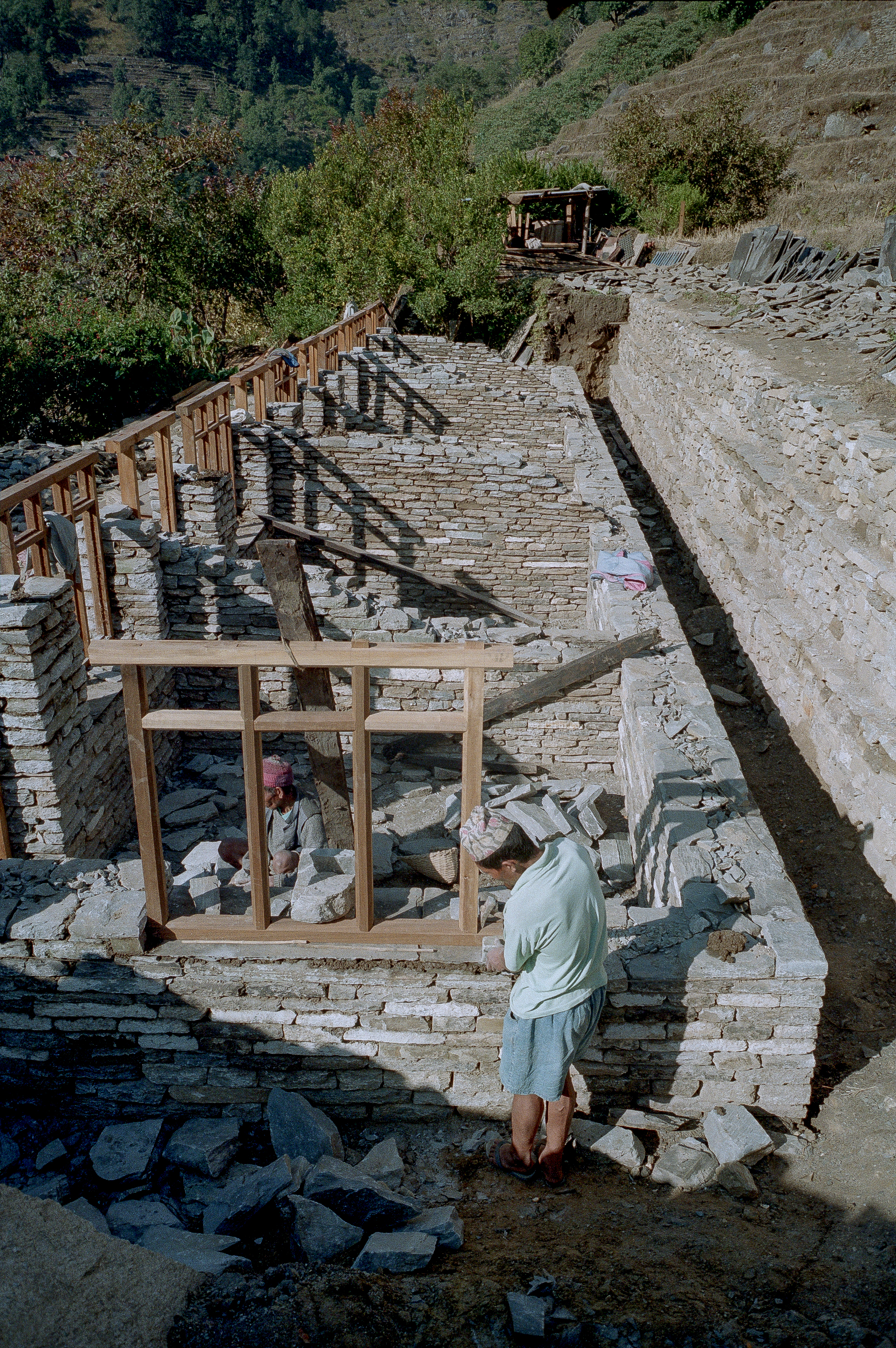 We encounter a new Tea House under construction beside the age old Annapurna route this tourism entrepreneur was building a six room hotel by shaping rock and cementing it one rock at a time, just like his ancestors centuries ago, The older man’s young wife, less than 20 years of age, the Tibetan refugee had a beautiful young child whose future looked bright. Work had began four weeks earlier on the hotel and he believed he would have it complete and ready to take boarders in another two weeks.