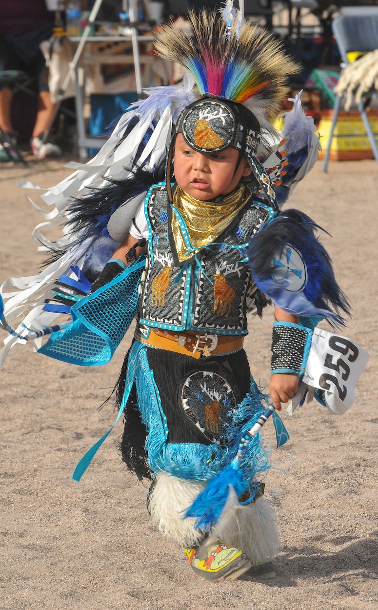 The Cayaditto brothers, Garrott and Logan from Albuquerque, NM both dance Northern Traditional and each has roots in the Navajo, Zia and Ute Tribes. Demonstrating the diversity of cultures and traditions now being absorbed by the present-day pow-wow…