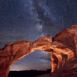 PERSEIDS METEOR SHOWER LIGHTS UP PHOTOGRAPHER’S LANDSCAPES CAPTURING THE SOUTHWEST NIGHT’S SKY ADDNG SPARKLE TO MOAB ‘S ARCH COUNTRY