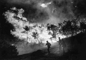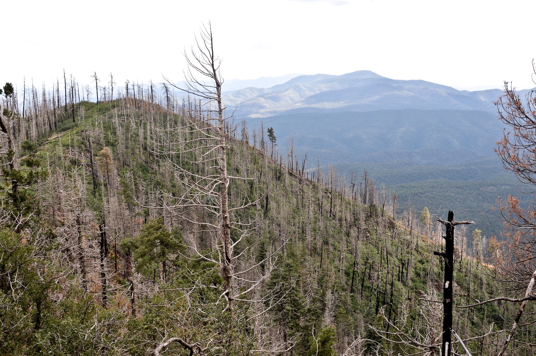 A total of 121,000 acres of the Coronado National Forest 250,000-acre Santa Catalina Ranger District burned in just two years. The Bullock fire was out in mid-June 2002, it had raged across 36,000 acres of prime timber and grasslands.Firefighters were able to douse it after a favorable shift of winds and breaks created by Catalina Highway and the Control Road down the north side of the mountains to Oracle. The Aspen Fire burned from June 17, 2003 for about a month on Mount Lemmon. It burned 84,750 acres of land, and destroyed 340 homes and businesses in the town of Summerhaven.