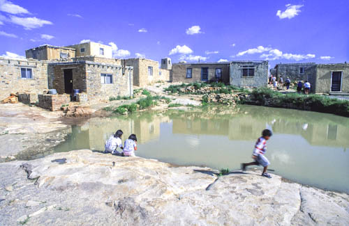 Indian kids play in the stream beneath the thick canopy from the Emory Oaks that provide the sought after acorn.