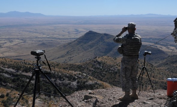 The US National Guard takes a forward operating position on Coronado Peak to Monitor smuggling routes to the east and illegal immigration toward the west. “They know we are here, says one Guard member, “we’re just a deterrent !” “They pay me $5000 a month to sit on a rock, for that kinda money I can do that all year-long.”