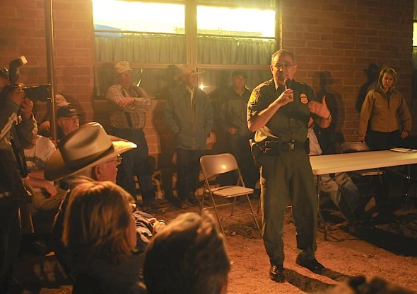 After the shooting ranchers and residents of the four corners region of Southeast Arizona, Southwest New Mexico, and the Mexican States of Sonora and Chichuahua meet at the Apache, Arizona one room school house after Congress women Gabby Giffords brought in media from Tucson, Phoenix and the New York Times to hear the needs and concerns of these folk living on the Border. Before the meeting, everyone bowed their heads and paid tribute to their dead friend and fellow rancher Robert Krentz, who like themselves, had tried to make the best of this difficult situation and Krentz and his dog died trying.